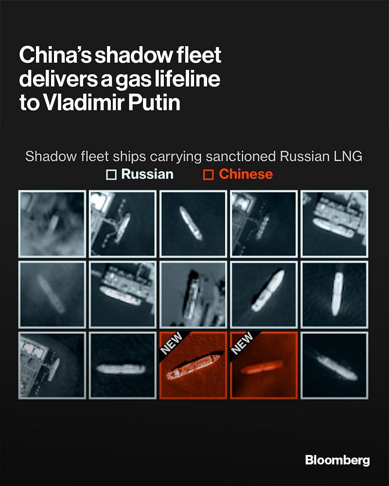 由於俄羅斯面臨經濟制裁和烏克蘭的破交作戰,長期依靠「影子艦隊」即各種匿名註冊、航線隱密的貨船來運輸石油與天然氣。據《彭博社》報導,這些以空殼公司與秘密行動編織,橫跨歐亞的龐大利益網,背後有中國勢力參與其中。