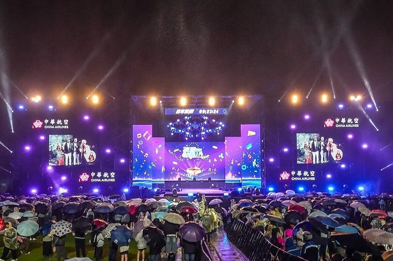 2026 桃園ON AIR 跨年晚會12月31日晚間在樂天桃園棒球場(圖)及亞洲矽谷IOT戶外廣場雙場地同步進行,到場民眾即便天公不作美,熱情也絲毫不減。 圖:桃園市觀旅局提供