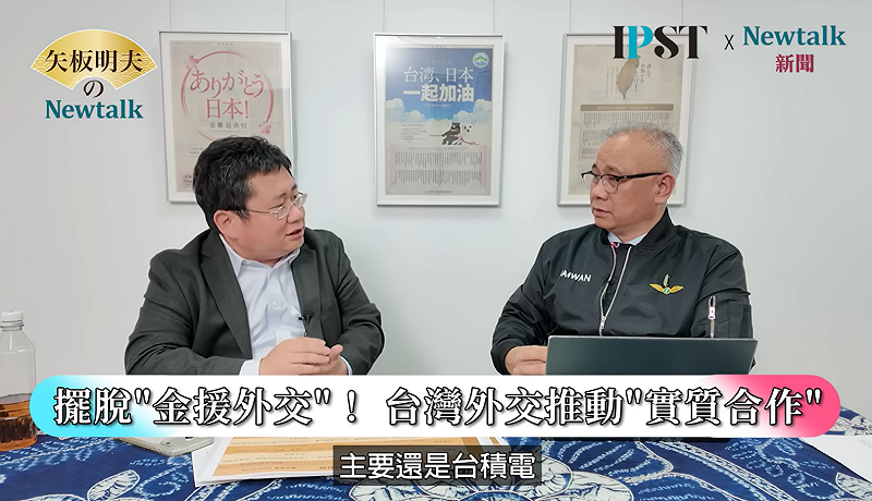 開南大學副校長、Newtalk 專欄作家陳文甲在網路節目《矢板明夫Newtalk》指出,台灣近年外交轉向以民主價值與實力為本,在台積電關鍵地位與美國支持下,即便面對中共威嚇,仍能以較少資源創造更顯著成果。 圖: 擷取自《矢板明夫Newtalk》影音畫面