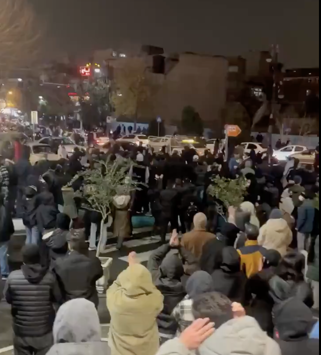 德黑蘭方面,抗議行動同樣持續擴散。據目擊者與網路影片指出,納齊阿巴德(Naziabad)地區示威者封鎖主要道路,湧上街頭。哈夫特霍茲廣場(Haft-Hoz Square)則聚集大批群眾,高喊「打倒獨裁者」等口號,矛頭直指最高領袖哈梅內伊(Ali Khamenei)。