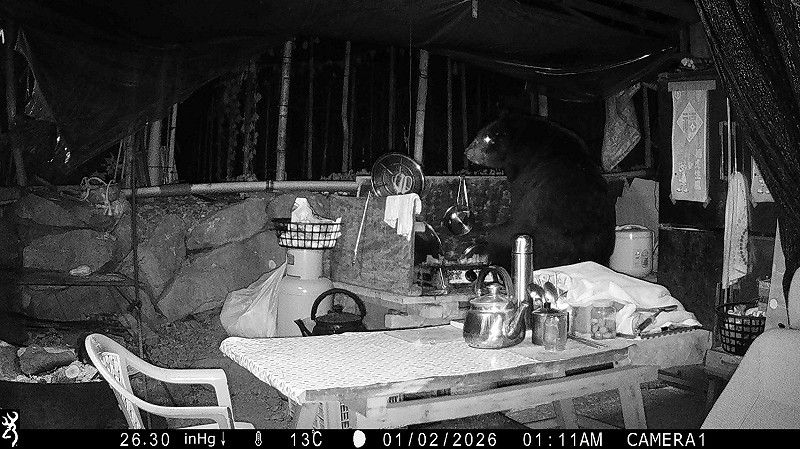 林業署嘉義分署指出,去年12月31日接獲阿里山達邦部落的居民通報,有台灣黑熊入侵工寮,這也是阿里山地區首次有黑熊入侵工寮的正式紀錄。事後林業署和嘉義縣鄒族獵人協會進行巡守與監測工作,證實黑熊於115年元旦至3日,台灣黑熊每日出沒工寮,啟冰箱尋找食物及破壞儲水桶。