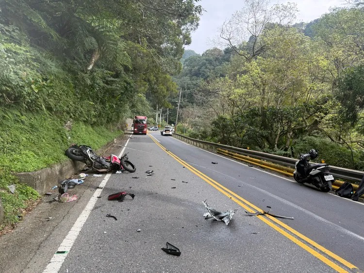 新店警分局指出,今日中午獲報,76歲于男騎乘Honda紅牌重機由坪林北宜公路往新店方向行駛,騎至29.6公里茶壺灣,不明原因跨越雙黃線,和對向準備前往吃午餐、40歲許男所駕駛的轎車發生撞擊,力道猛烈導致重機毀損嚴重,路過民眾見狀立刻報案。