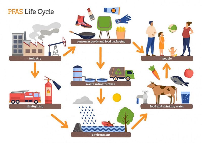自1938年特氟龍問世以來,PFAS被人類廣泛應用於生產可耐熱、抗污、防油、疏水的氟聚合物塗料等產品中。有「永遠的化學品」之稱,具有高度穩定性的PFAS需要數千年才能自然降解,滲入土壤、水體與食物鏈到處都能檢測到,科學家們連在北極的北極熊身上甚至也發現了PFAS的痕跡。科學家警告說,這些有毒物質可通過吸入或攝入進入人體,而最近的研究表明,它們甚至可以通過皮膚吸收進入血液,長期接觸恐有健康風險,如高膽固醇、甲狀腺、肝損傷、癌症,影響生殖系統和免疫系統、神經系統等。世界衛生組織已經將PFAS中的PFOA列為致癌物,將PFOS列為可能致癌物。