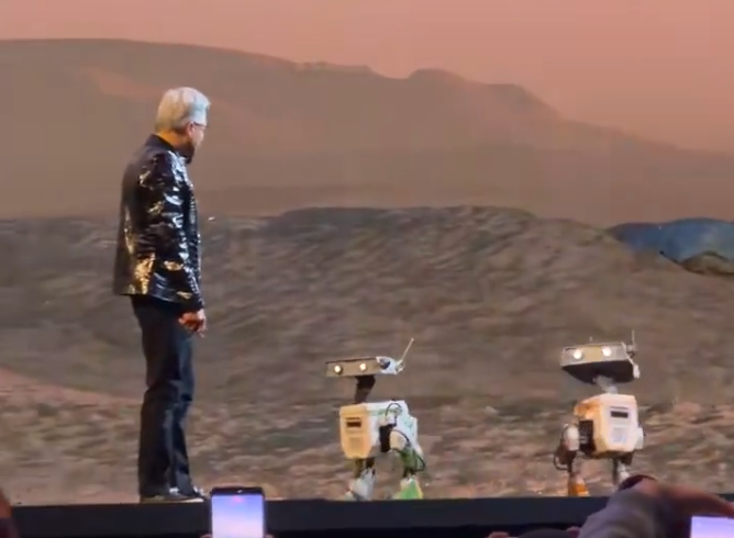 黃仁勳發表Vera Rubin平台的6款新晶片,並點名台積電、鴻海、廣達等業者為供應鏈夥伴。同時,他重申「實體AI」時代即將來臨,體現在機器人與自駕車發展。舞台上不但出現兩尊小型機器人助陣,他背後的螢幕更呈現一整排各式各樣的機器人型態。他也強調,全球打造L4自駕技術與Robotaxi的軟硬體業者,都用到輝達的技術。