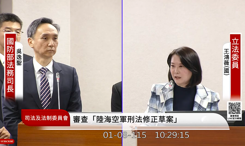 王鴻薇最後表示,司法院及立法院法制局的建議均屬中肯,為使法律更具明確性、降低基層官兵誤觸風險,她希望國防部採行司法院意見,將「足以生軍事上之不利害」要件納入修法方向。