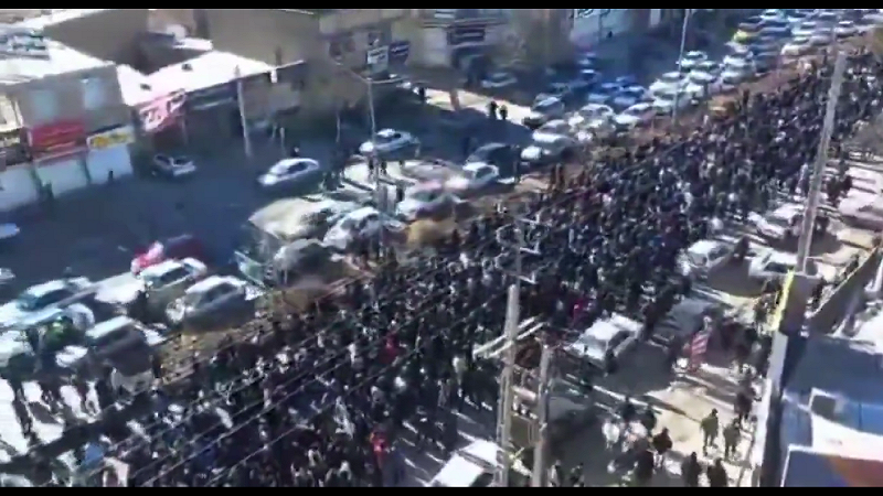 影片顯示,多地群眾持續集結示威。在伊斯法罕省法拉瓦爾詹,大批民眾動員上街;哈馬丹出現規模可觀的示威遊行;西部城市霍拉姆達雷的抗議行動則從夜間延續至清晨。另有畫面顯示,在德黑蘭的抗議之夜中,數以萬計民眾走上街頭,氣氛高度緊繃。