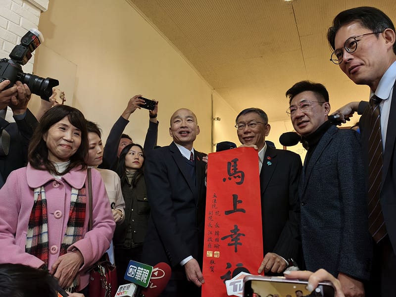 拜會過程中,由韓國瑜、江啟臣接待,並致贈立法院新年春聯「馬上幸福」。不過,面對媒體提問,包括原先民進黨立委王世堅要一同會面等問題,柯文哲、黃國昌及陳昭姿均未回應,現場也未就相關議題發表談話。