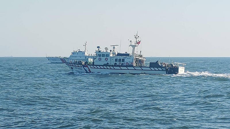 中國海警船今(14)日下午再度編隊侵入金門限制水域,海巡署金馬澎分署第十二巡防區立即調派巡防艇前推拒止,並採一對一併航監控方式強勢驅離,成功迫使對方於16時48分轉向離開,展現我方堅定捍衛國家主權與海域執法立場。