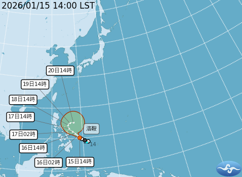 位於菲律賓東南方海面的熱帶性低氣壓TD01,已於今(15)日14時發展為輕度颱風「洛鞍」,也是今年第一個颱風,預測未來朝西北轉東北方向移動,對台灣無直接影響。