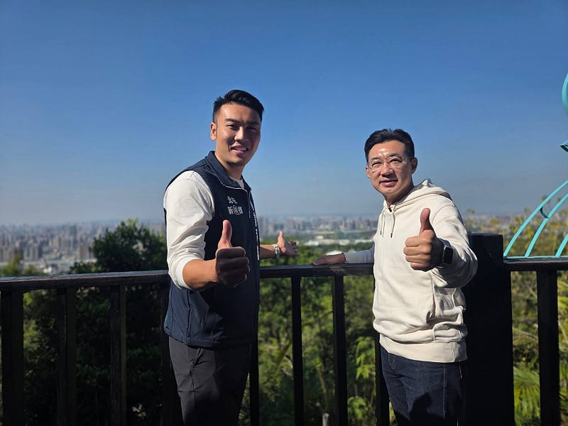 許育璿率先掛出與江啟臣同款的看板。 圖:許育璿/提供