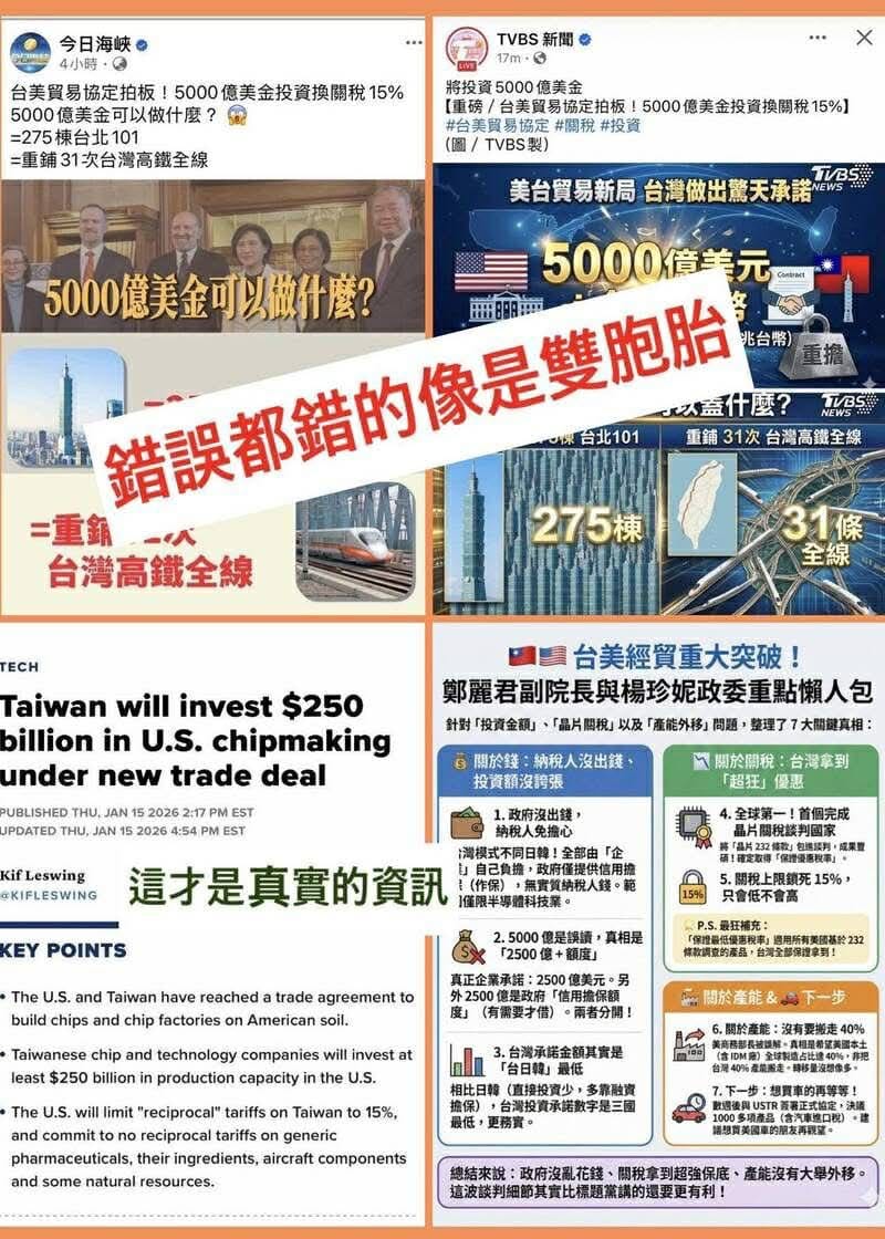 針對談判成果公布後,國內部分政治人物與輿論,迅速將焦點轉向「對美投資5,000億美元」、「台積電變成美積電」等質疑聲浪,謝金河則是直言,這類說法刻意忽略制度設計與實質條件差異,恐怕並非單純誤解,而是選擇性解讀。