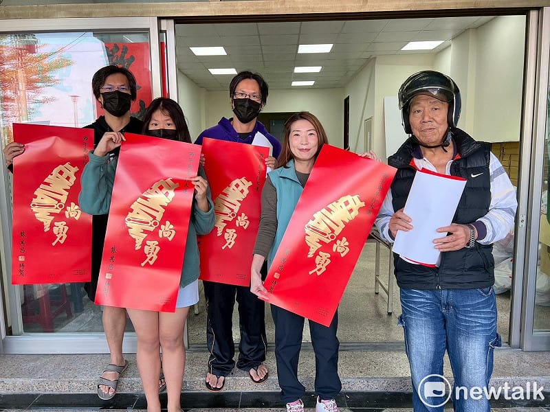 中華職棒會長蔡其昌在全國319個據點同步發放台灣尚勇春聯,台南市議員蔡麗青也於土城、國安海佃兩個服務處同步發放,一早就排滿明得領取民眾,瞬間秒殺。 圖:蔡麗青服務處提供