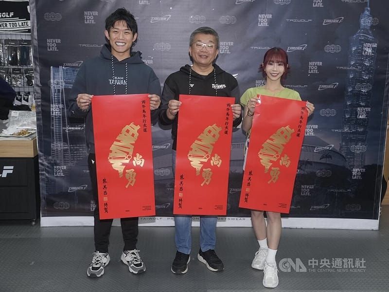 (中央社記者謝靜雯台北18日電)樂天桃猿隊投手陳冠宇、中職會長蔡其昌今天出席品牌記者會,發放限量的「台灣尚勇」春聯。陳冠宇對球迷喊話,今年有很多國際賽,也有即將展開的中職賽季,盼球迷持續支持。