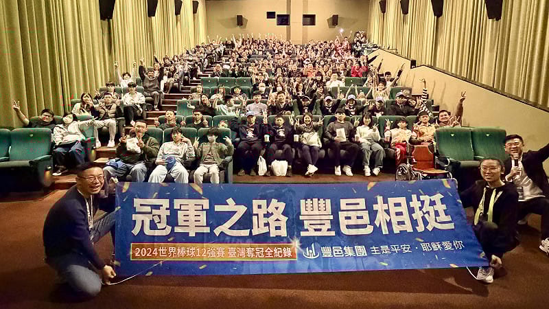 豐邑集團昨(18)日在台中大遠百威秀影城包場《冠軍之路》,邀請住戶及弱勢兒童、向上社區棒球隊一同欣賞台灣隊的奮戰歷程,集團表示,面對房市低迷與市場挑戰,希望帶給大家滿滿正能量,以「不放棄、團結拚到底」的精神,為新的一年打氣。
