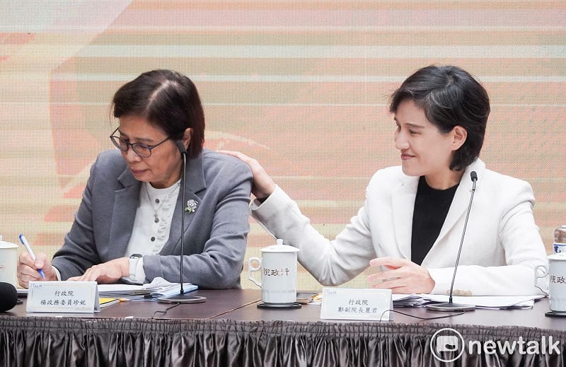 台美關稅談判總算底定,領軍談判的行政院副院長鄭麗君昨天清晨率團返台,經貿辦總談判代表楊珍妮在桃園機場一度哽咽拭淚,而行政院今(20)日舉辦「台美關稅談判說明記者會」,楊珍妮致詞時談及同仁日夜陪伴再度落淚,楊珍妮戲稱自己「我這個人很愛哭、就會掉眼淚」,記者會結束後,楊珍妮也一一與卓榮泰、鄭麗君等出席官員擁抱。