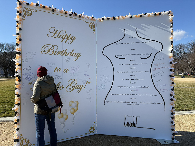 美國華盛頓特區國家廣場近日出現一件高度約 3 公尺的爭議性裝置藝術作品,作品內容複製了一張署名「唐納德・川普」的生日賀卡,引發外界對總統川普與已故性犯罪者艾普斯坦過往關係的再度關注。