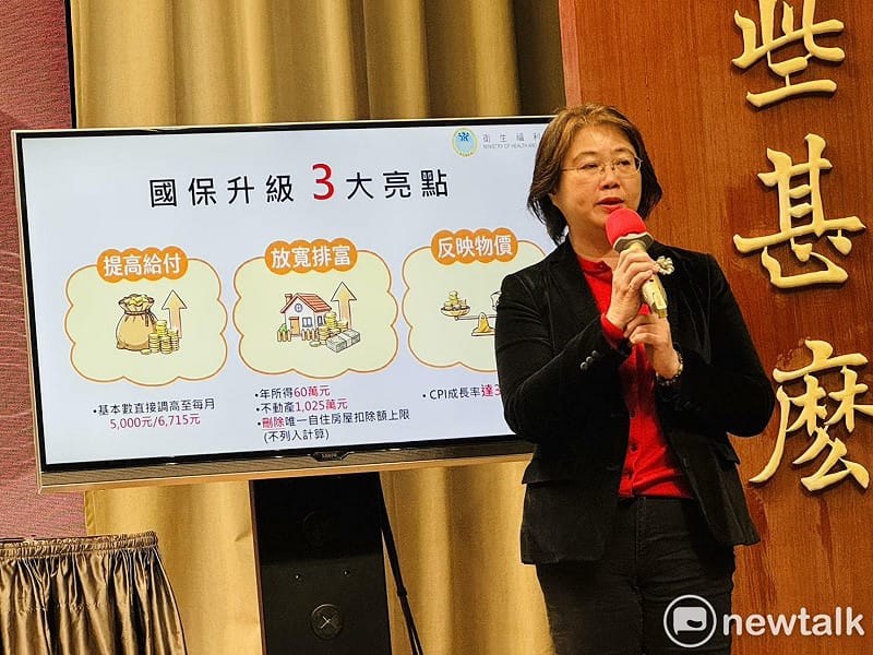 衛福部社會保險司長張鈺旋表示,修法提高相關給付金額,其中,老年年金基本保證、遺屬年金及原住民給付,將由現行每月4049元調升至5000元,增幅約23.5%;身心障礙基本保證年金則由5437元提高至6715元。