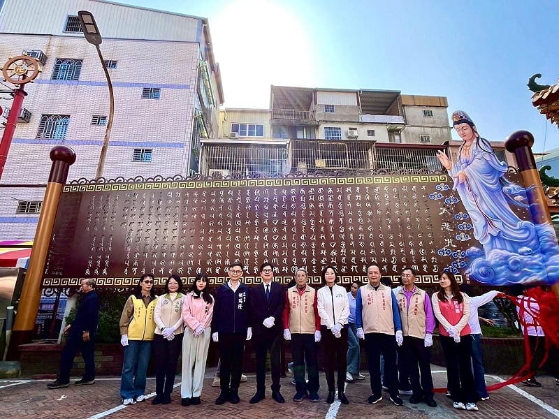 已有278年歷史的高雄市前金萬興宮,於今(22)日舉行新建「關公殿」開光安座大典,高雄市長陳其邁親臨現場,與立委賴瑞隆、柯志恩及萬興宮主委徐政朝共同為備受矚目的「大悲咒法牆」正式揭示,見證這座百年古廟結合科技與藝術的轉型成果。