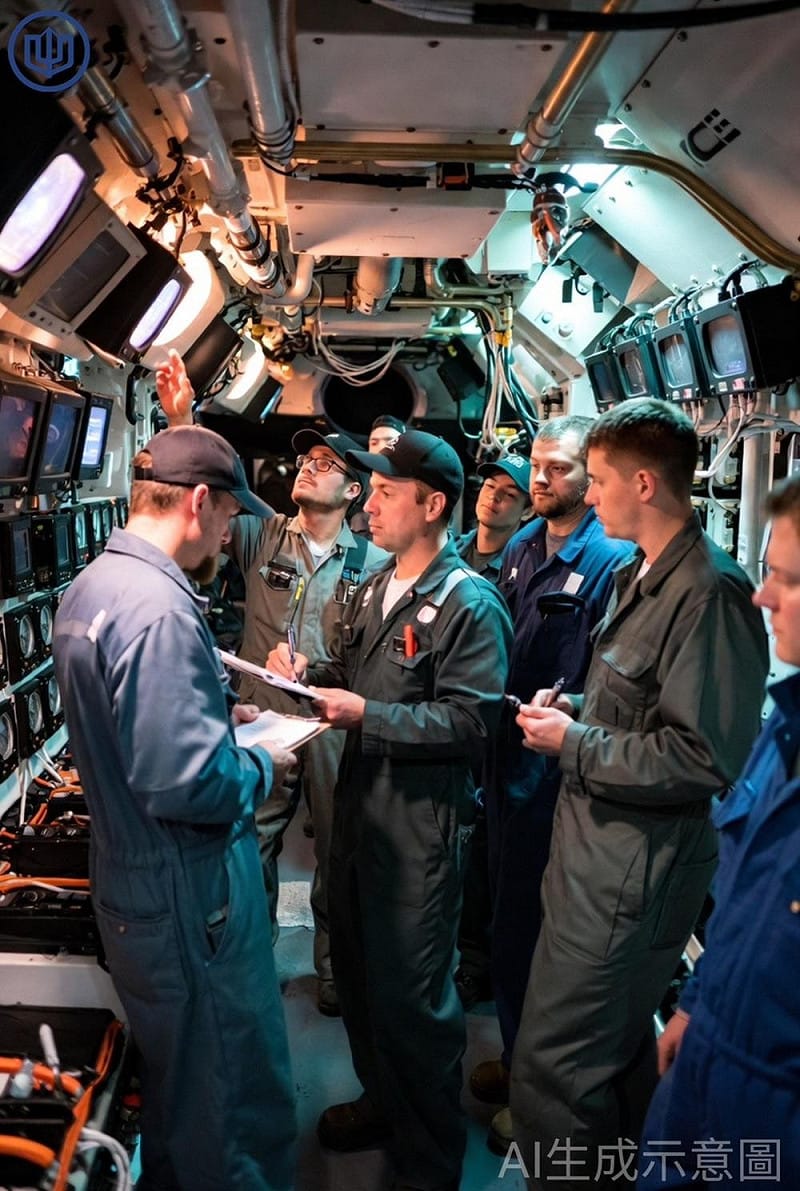 3.系統檢查:類似飛機起飛前檢查,確認水密門與艙室關緊不漏、液壓、電力、空氣、控制系統正常,滅火、防漏、緊急燈光、救生筏、逃生通道隨時可用。水下任何小問題都可能致命,安全絕不容馬虎。