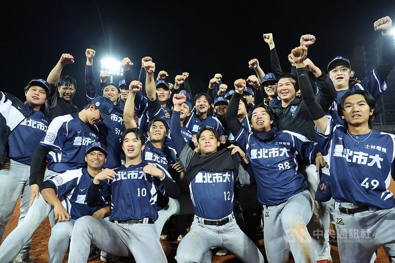台北市大這個學年度從桃園盃、梅花旗到大專棒球聯賽都拿下冠軍,總教練王宜民表示,賽前應該沒有人想到北市大可以奪冠,從預賽到複賽,球員們都盡力了,教練團齊心協力才能有好的結果。