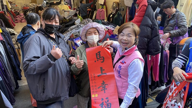 楊瓊瓔到水湳市場掃街拜票。 圖:楊瓊瓔服務處/提供