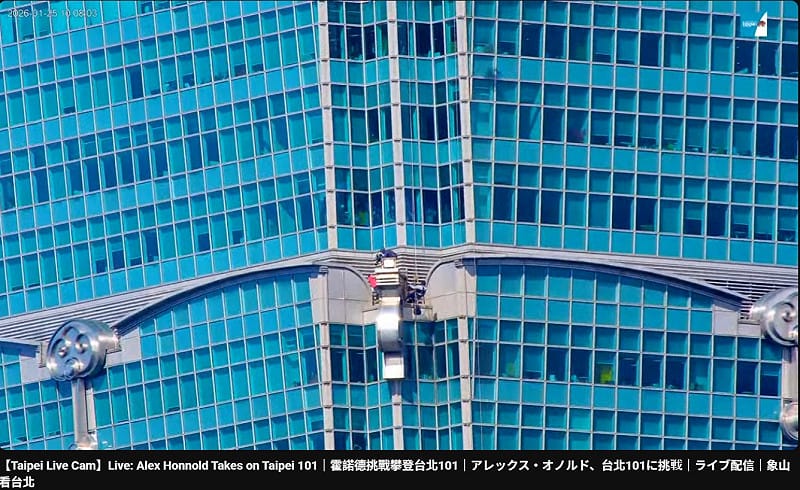 「台北觀光即時影像」YouTube 頻道,臨時將原本的「象山看台北」4K 高畫質直播畫面,改為即時轉播霍諾德攀登台北101的過程。