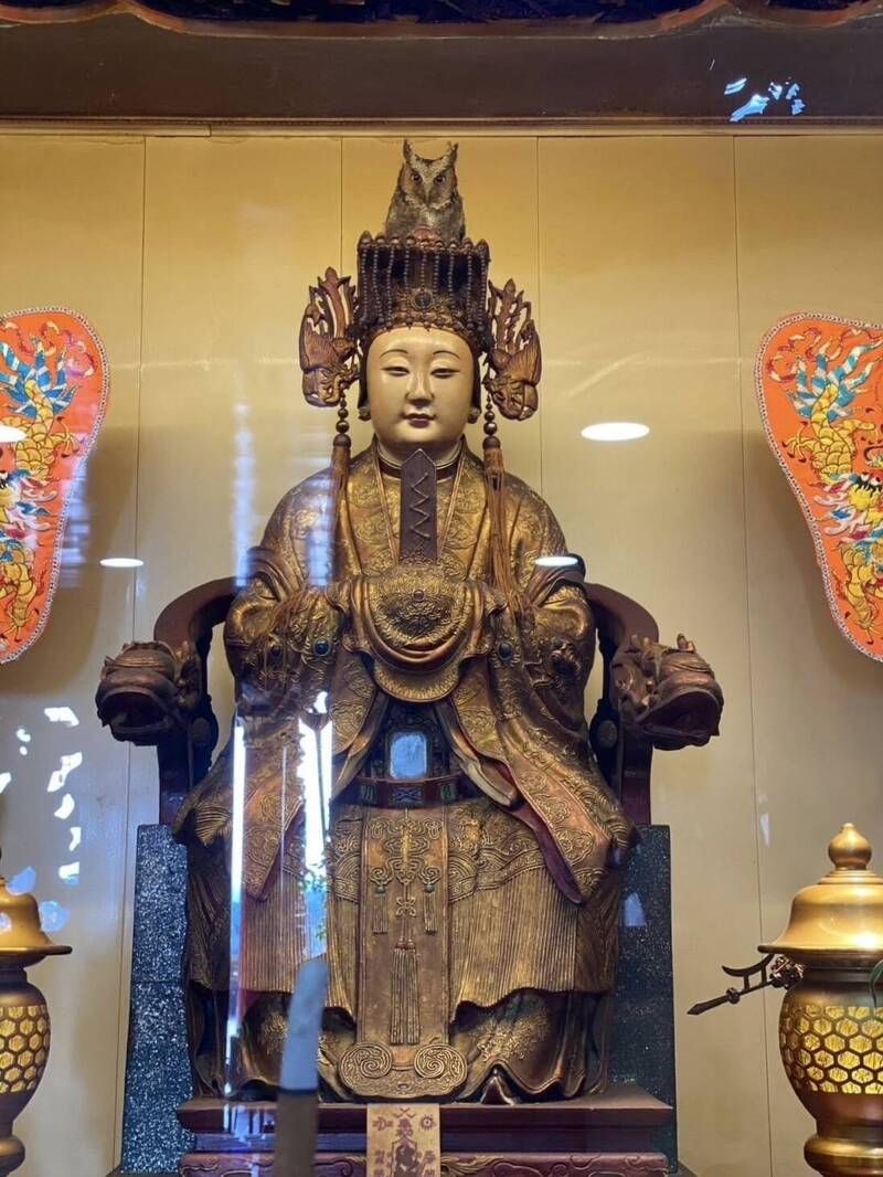 苗栗縣南庄鄉獅頭山勸化堂媽祖殿昨(24)日出現罕見畫面!一隻保育類領角鴞飛入殿內,竟直接停棲在天上聖母神尊的頭冠上,畫面曝光後引發信眾與網友熱烈討論。廟方表示民間信仰及佛門角度皆是「有靈性、識得清淨處」的眾生,為其進行三皈依祈願。