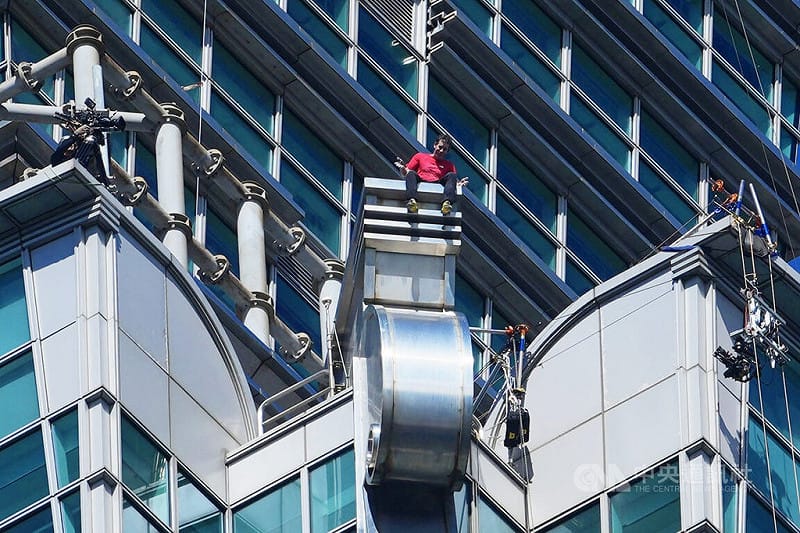 霍諾德強調,今天天氣非常棒、非常舒服,「我就是努力保持平衡,不要掉下去(笑),今天是觀賞台北非常好的一種方式,幾乎沒有雲層,天空也非常地藍。」