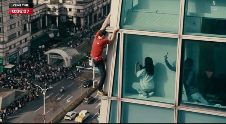 霍諾德昨日挑戰「無繩索、零防護」徒手攀登台北101,以驚人的速度不斷往上爬,全程僅花91分鐘順利攻頂。由於建築內沒有淨空,不少人在窗前,近距離觀看霍諾德攀登過程。其中有一名女生特別蹲在窗邊近距離拍攝,被部分網友抨擊此舉是在干擾霍諾德,該畫面被瘋傳遭到不少人炎上。