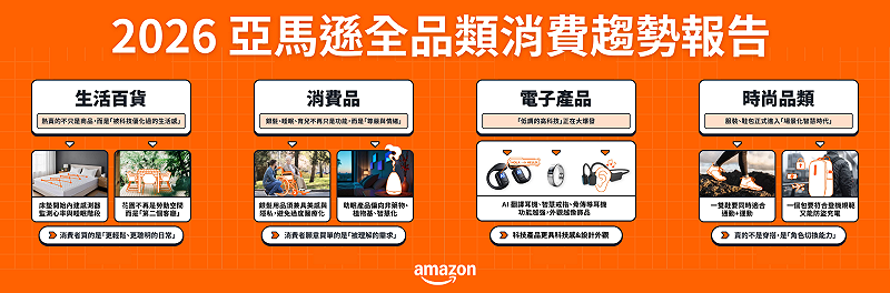 為此,亞馬遜全球開店今日發布「2026年全球消費趨勢報告」,整合亞馬遜美、歐、日站點的消費洞察,解析全球消費需求變化,並聚焦消費電子、生活百貨、消費品與時尚四大品類,協助企業瞭解各站點的市場特性與產品佈局方向,找出切入機會,依據市場需求進行精準選品與產品創新,進而放大品牌優勢,成功拓展海外市場。