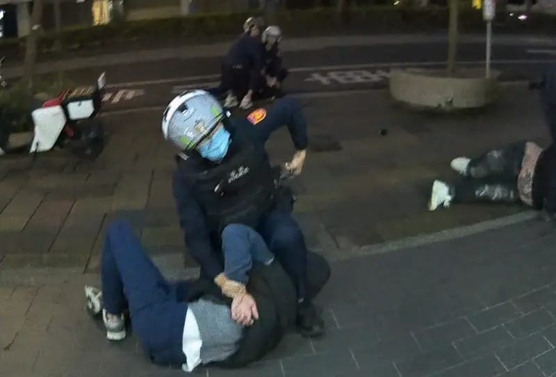台北市信義區一間超商門口,昨日傳出聚眾鬥毆事件,一對情侶檔疑似因在KTV玩骰子遊戲與同行人起爭執,隨後在超商巧遇爆發糾紛,最終演變成肢體衝突,警方到場還遭嗆聲,遭員警噴辣椒水壓制,並搜出毒品K他命。