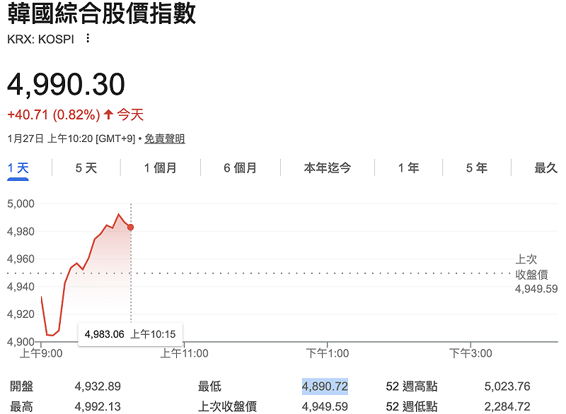 這項威脅衝擊了韓國股市表現,Kospi 指數今早回跌近 1.2%,低點至 4,890.72 點,目前指數跌幅收斂且翻正。汽車股為重災區,汽車巨頭現代(Hyundai)和起亞(KIA)的股價稍早分別重挫 4%、5%。