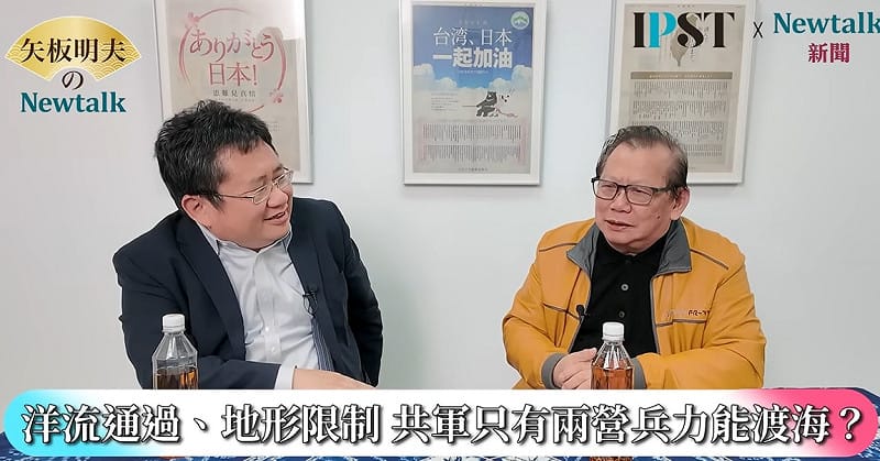 黃澎孝斷言,解放軍演練封台是笑話,全世界只有美軍做過相關研究,稱為「堤路計畫」,但最後並沒有實施,其中一個原因就在於台灣不容易登陸,沒有足夠寬廣的海灘,讓具規模的部隊登陸。 圖:擷取自《矢板明夫Newtalk》影音畫面