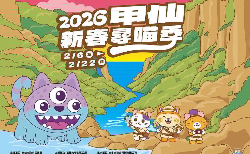 高雄市甲仙區公所 2 月 6 日至 22 日辦理「2026 甲仙新春尋喵季」街區藝術探索活動,以原創角色「偶呀吉」為引領,融合多元公共藝術、故事情境與趣味互動任務,邀請民眾春節期間漫步甲仙街區,透過實地尋寶重新認識這座山城的文化底蘊與生活樣貌。