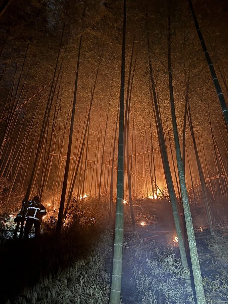 雲林縣古坑鄉草嶺石壁地區昨(29)日晚間傳出火警,現場勘查共出現6個火點。 圖:取自雲林縣副縣長陳璧君臉書