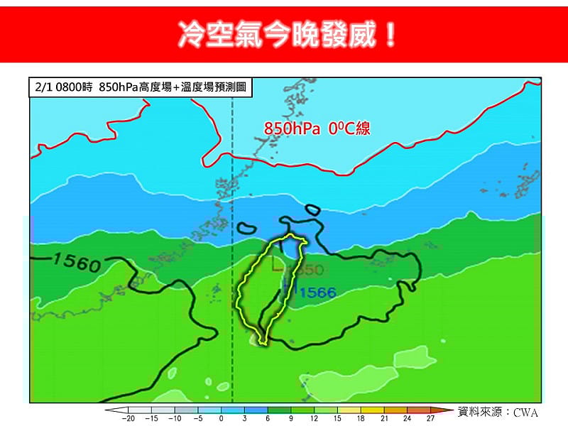 根據今晨最新模擬結果顯示,最冷時間會落在明日至2月3日清晨,而這波冷空氣強度會較上一波強,強度有機會達到大陸冷氣團等級;迎風面會以先濕冷、後轉乾冷的型態為主。