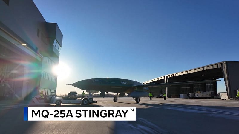 美國海軍首架量產代表型 MQ-25A 「魟魚」無人空中加油機,已完成首次低速滑行測試。該測試於密蘇里州聖路易斯市郊外的中美洲機場內、波音公司設施進行,相關畫面由波音與美國海軍航空系統司令部(NAVAIR)對外公布。