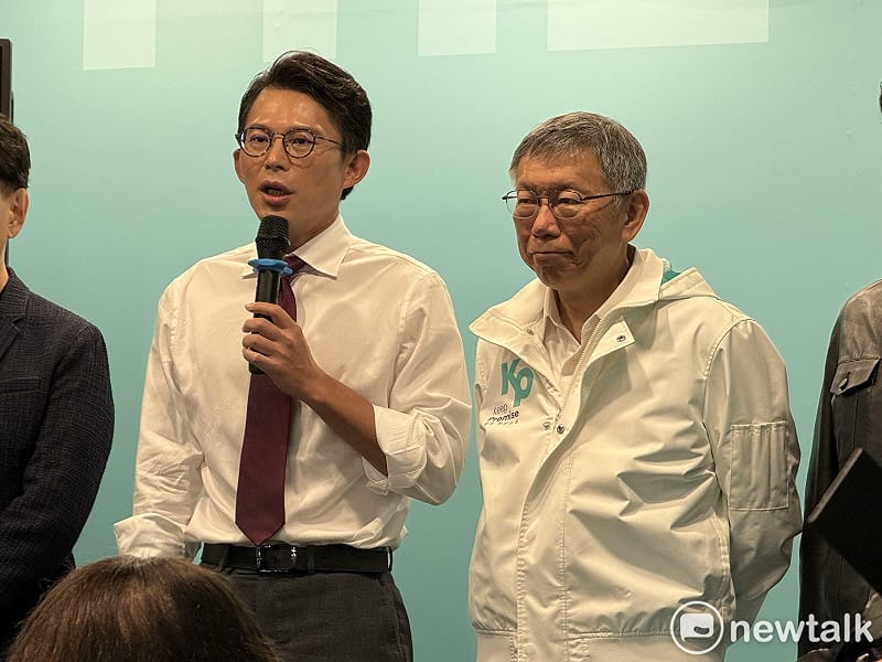 柯文哲則站在黃國昌身旁,面帶微笑,但未多做回應。