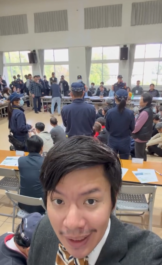 名間在地製茶師「常行深」現身環評範疇界定會,並拍下影片用英式英文說明茶農下跪的原因。 圖:取自常以深Threads