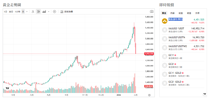 金價在前日創高後迅速壓回,引發大量獲利了結賣盤出籠。台銀表示,由於金價陸續跌破5日均線、10日均線支撐後,引發技術性賣壓及觸發停損單,同時在保證金調升預期下,槓桿資金加速去化部位,迫使金價擴大跌幅並下探至4,957美元,吸引低接買盤進場,金價反彈至5100美元上方震盪。