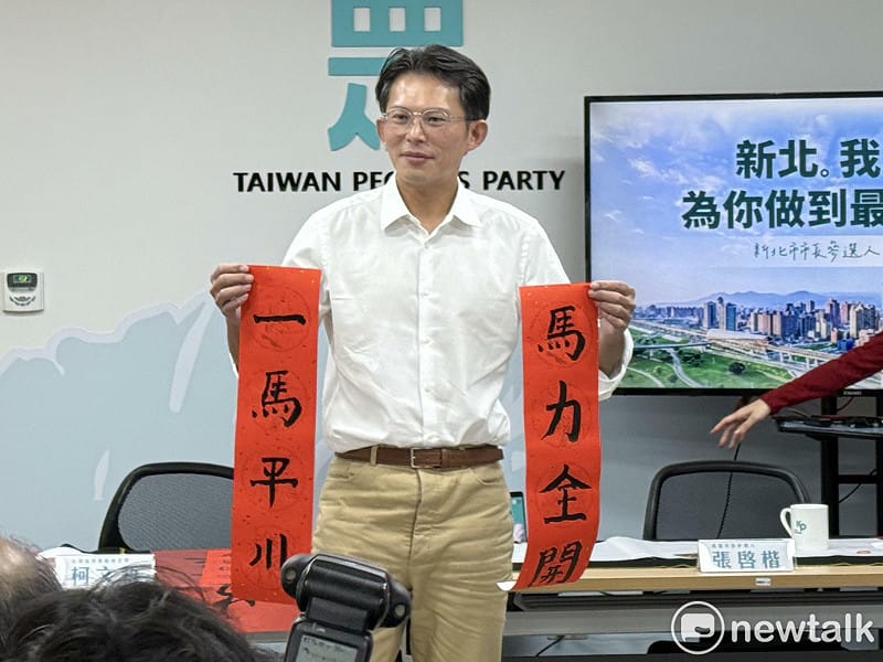 針對2026新北市長選舉,民進黨徵召立委蘇巧慧,國民黨人選未定,民眾黨今(4日)確定徵召黨主席黃國昌出戰,黨下午召開新春小物開箱記者會時,黃國昌現場揮毫「一馬平川」四字,被問到是否意指想像一匹馬一樣、飛奔超過藍營新北市長呼聲最高的人選、台北市副市長李四川?黃國昌表示,新年喜氣,寫春聯不要有太多政治聯想。