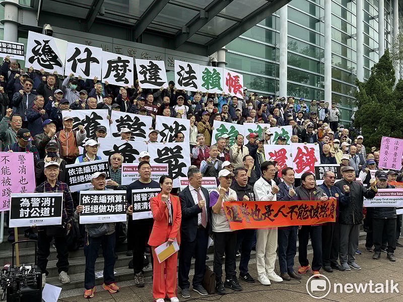 立法院去年三讀通過《警察人員人事條例》修正案,提高退休警消所得替代率,但賴政府至今未編列預算,民眾黨宣布協助退休警消發起團體訴訟,黨主席黃國昌今(5日)率領近300名退休警消到台北高等行政法院前召開記者會,高喊「護警消尊嚴!賴清德還錢」口號,黃國昌表示,民眾黨受理逾2,000件參與團體訴訟申請,「這是有史以來人數最多、規模最大的一次,對當權者提起的團體訴訟」,嗆賴清德出來面對。