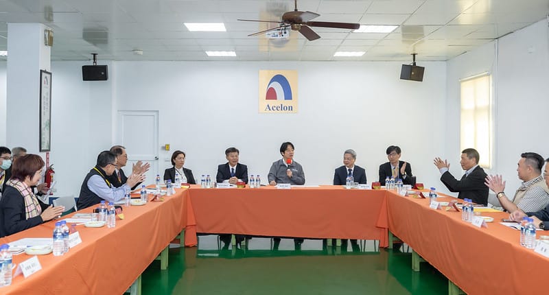 賴清德今上午前往彰化參訪聚隆纖維股份有限公司芳苑廠並與紡織產業座談,包括經濟部長龔明鑫、立委陳素月、陳秀寳、彰化縣長王惠美、經濟部產業發展署署長邱求慧、聚隆纖維股份有限公司董事長周文東及多間紡織業企業代表等人出席。