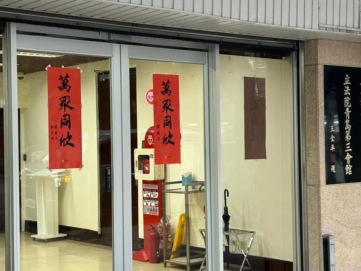 周軒直言,雖然民眾黨團的辦公室是在這裡,但,青島三館是立法院的公共場地,「民眾黨的春聯就這樣貼在門口,難道是覺得青島三館是民眾黨黨部了嗎?」