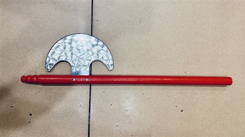 新北市板橋區昨日晚間9時許,王姓男子手持乩童專用的「月斧」與友人嬉鬧,當街揮舞嚇壞路過民眾,擔心發生街頭暴力事件立即報警求助,警方獲報到場將王男帶回派出所釐清,全案依違反《社會秩序維護法》移送新北地院簡易庭裁處。