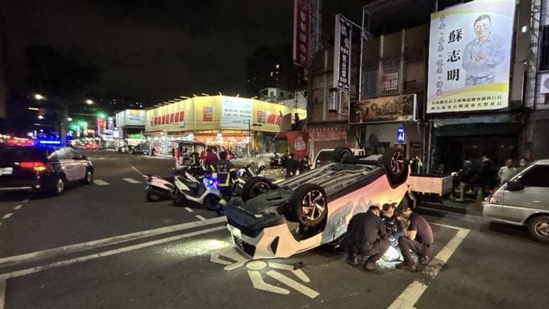 鳳山分局指出,五甲派出所員警2月5日晚間巡邏,行經鳳山區南正二路150巷口時,發現一輛自小客車行跡可疑,員警示意停車受檢,33歲廖姓男子心虛拒檢並加速逃逸,在市區道路瘋狂違規,警方基於安全考量在後追蹤,廖嫌逃逸約1公里後,於鳳南、南榮路口自撞分隔島導致車輛翻覆。