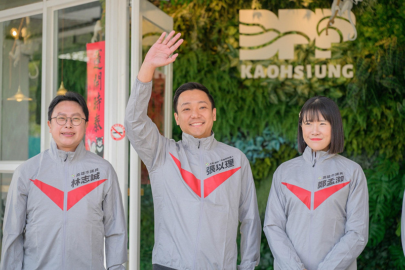 2026第三屆高雄左營眷村年貨大街6日晚間於左營文化園區熱鬧開幕,高雄市長陳其邁親自出席,與地方民眾一同感受濃濃年節氣氛。左營楠梓市議員參選人、前青年局長張以理也到場,身著日前由他發想的新戰袍亮相,胸前紅色V字呼應「超人力霸王」的主題,也代表陳其邁子弟兵被市長訓練成超人民代,成為現場吸睛亮點。