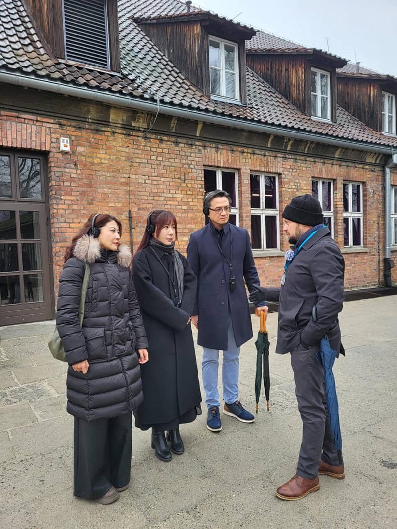 林楚茵在文中表示,在接近零度低溫中,她和吳沛憶委員、台灣駐波蘭大使劉永健參訪波蘭Auschwitz-Birkenau 奧斯維辛集中營,在館方安排下,於紀念冊簽名留念,心情格外沉重。納粹曾以國家之力,在這裡系統性屠殺超過一百萬名猶太人。去年是奧斯維辛解放 80 週年,多國領袖出席紀念儀式,卻刻意不發表演說,將麥克風留給五位倖存者,讓真正的見證者親口述說歷史。