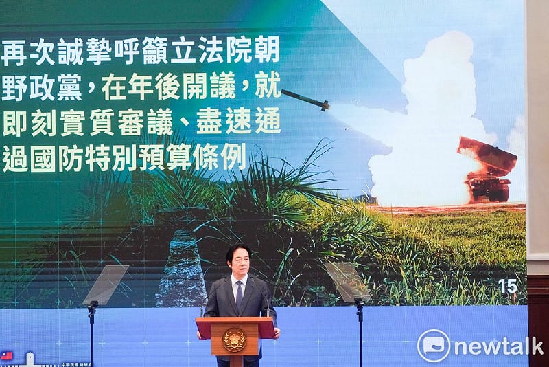 賴政府提出8年1.25兆元國防特別條例,但遭在野黨杯葛,至今仍未付委。對此,總統賴清德今(11)日表示,提升國防支出是民主友盟國家的共同趨勢,這也使得美國等主要軍備供應國,當前產能早已經排滿。他感謝美國政府對台灣的支持,為我國發出報價單;不過,現在預算遲未通過,除了可能讓台灣跌出優先名單、延宕關鍵武器裝備的交付,更會讓國際社會質疑台灣守護自己國家的決心。