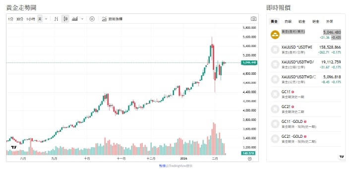 日本國會大選底定後,政治不確定性消除,然而市場對日本央行的鷹派預期增溫,使日元連日反彈升破155 關口,壓制美元指數走勢疲弱,使金價下檔緩步墊高,盤整於5,030-5,050 美元區間。截至今天(11)下午1點半前,黃金交易價來到5047 (盎司/美元)。